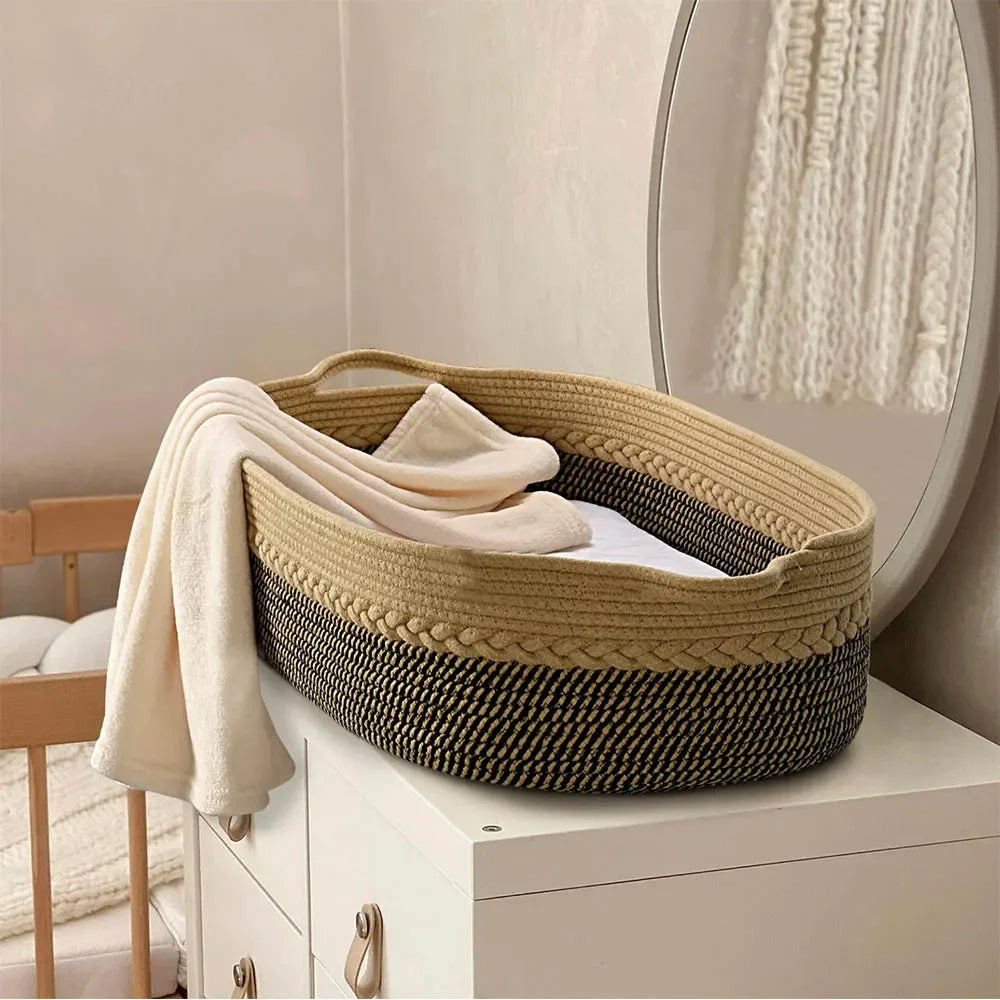 Offrez à votre bébé un espace doux, sécurisant et confortable dès ses premiers jours. Ce Couffin Portatif Tressé à la Main est conçu pour servir à la fois de berceau, de lit de repos et de table à langer pratique. Léger, élégant et facile à transporter, il vous accompagne partout dans la maison ou lors de vos déplacements.